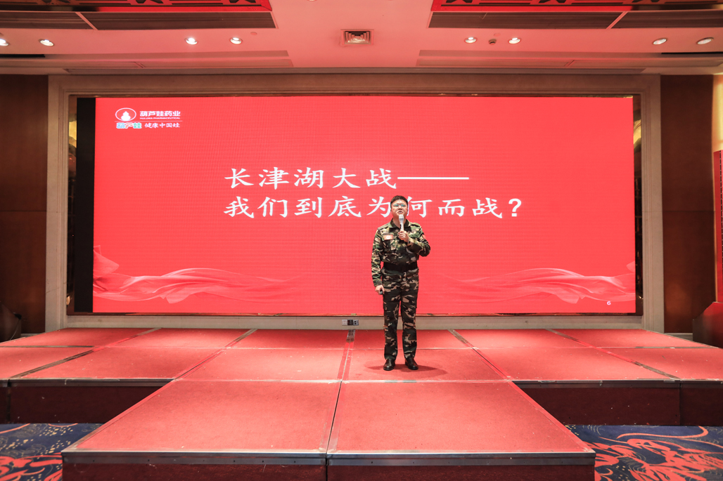 会议开始,与会人员共同观看了电影《长津湖》的精彩片段。面对极寒恶劣的环境和强大的对手,英勇的志愿军舍生忘死、浴血奋战,创造了史无前例的战斗奇迹,谱写了气吞山河的英雄赞歌,锻造了为祖国和民族的尊严而奋不顾身的伟大抗美援朝精神,这份精神激励着尊龙凯时全体营销将士不畏艰险、迎难而上。葫芦世家事业部副总经理李传武介绍了本次战役的目的,并对具体作战计划进行了宣导。他指出,选择在新年伊始打响“长津湖大战”;是为肠炎宁品牌的突围而战;是为依然年轻而热血的青春而战;是为自己热爱的公司、我们的客户而战;是为团队的兄弟姐妹们而战,更是为了我们自己的家人而战!